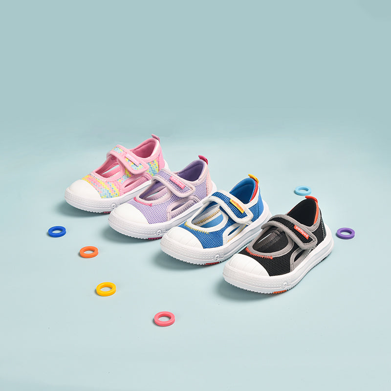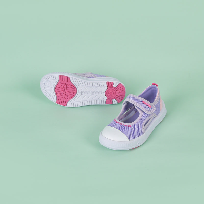 Sun keeps little feet cool and comfy with breathable canvas and a slip-resistant sole. Its strap makes them a breeze to put on so kids can run, play, and explore all day without missing a beat.