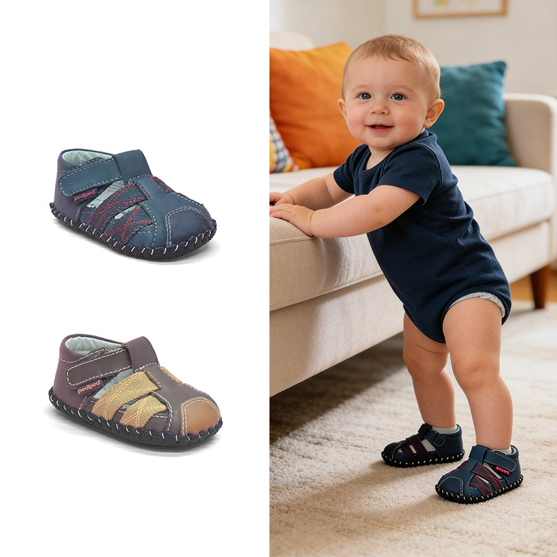 The Aaron is a classic fisherman sandal, designed to support your baby’s earliest steps with breathable comfort, soft flexibility, and timeless style. Perfect for warm-weather adventures, this shoe promotes healthy development while keeping little feet cool, secure, and stylish.